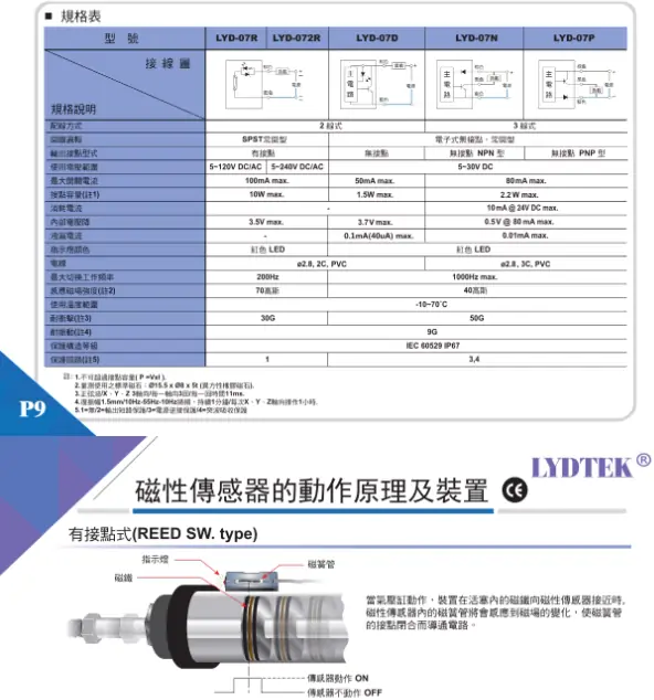 LYDTEK磁性開關LYD-17系列有:LYD-17R,LYD-17RD,LYD-17N,LYD-17P;